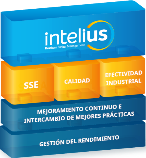 Intelius fue diseñado para cubrir todos los procesos de Braskem. Inicialmente, cubre procesos de manufactura y algunos procesos de apoyo relevantes a la producción, a través de pilares y temas transversales.